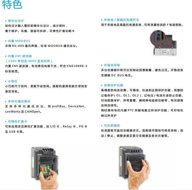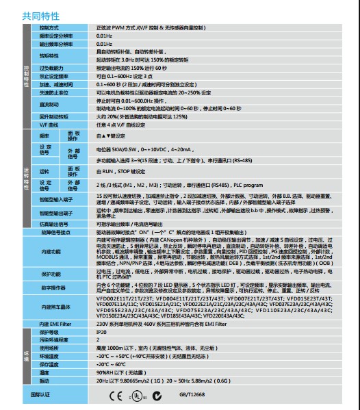| VFD-E | VFD004E43C | 3P460V,400W,IP20,內(nèi)置CanoPen通訊接口、EMI濾波器 |