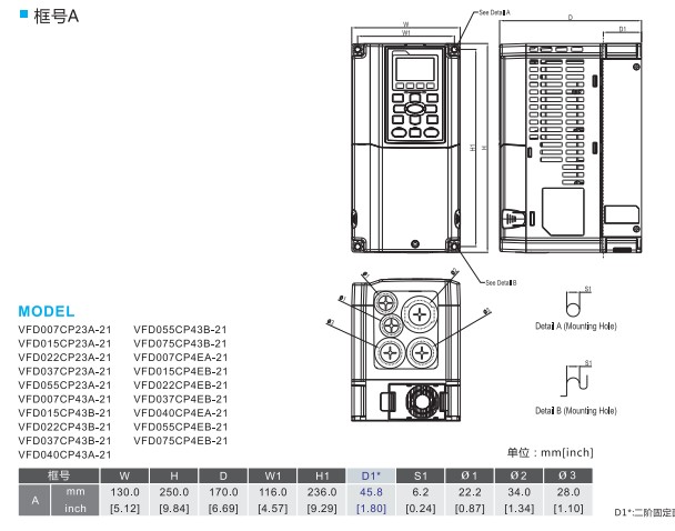 | VFD-CP | VFD750CP23A-00 | 220V/3P,75kW,內(nèi)置10k PLC,剎車內(nèi)建,DC電抗選購, UL,CE,IP00,UL OPEN TYPE |