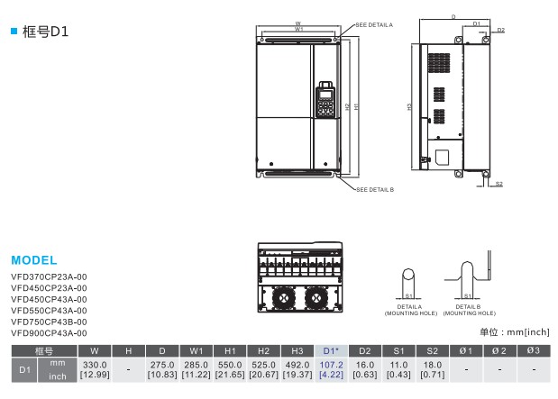 | VFD-CP | VFD900CP23A-00 | 220V/3P,90kW,內(nèi)置10k PLC,剎車內(nèi)建,DC電抗選購, UL,CE,IP00,UL OPEN TYPE |